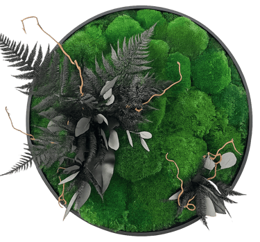 Individualiai kuriami stabilizuotų samanų paveikslai, tampantys pagrindiniu erdvės akcentu, o ne fonine detale.