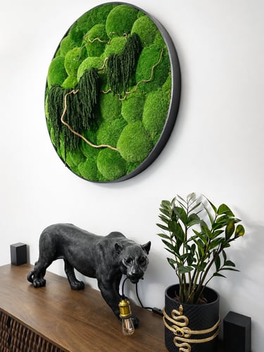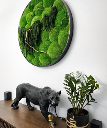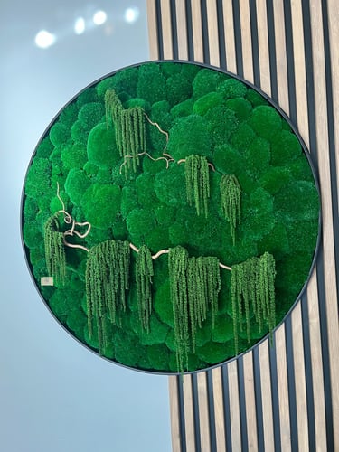 Stabilizuotos samanos suteikia interjerui natūralumo ir gyvumo, kurio neperteikia spausdinti ar tapyti vaizdai. Tai ne tik vizualus akcentas, bet ir pojūtis – faktūra, gylis ir natūrali spalva, kuri keičia erdvės atmosferą.