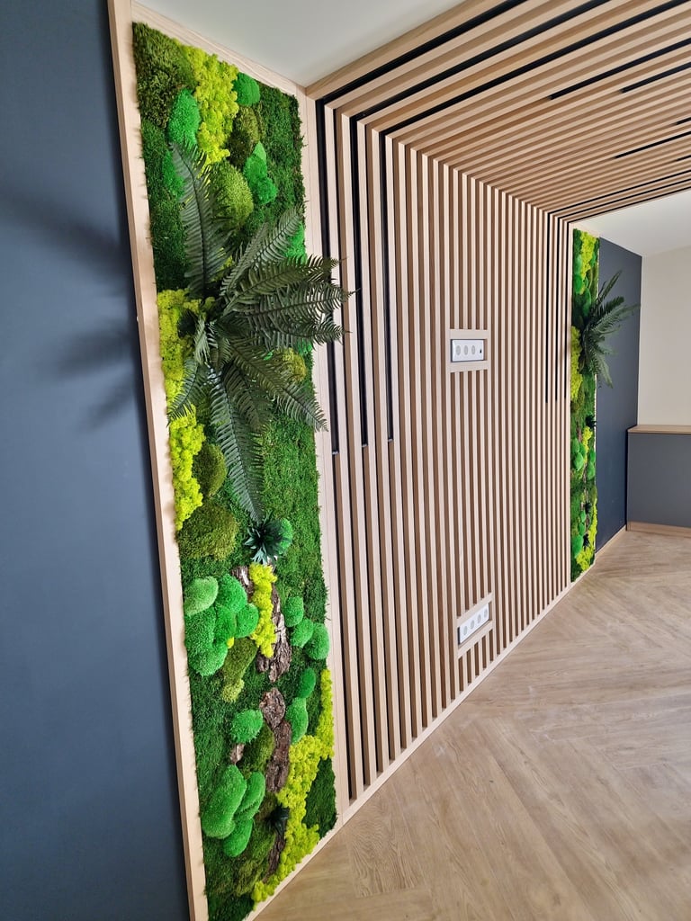 Stabilizuotų augalų ir samanų dekoras – tai modernus būdas suteikti sienoms išskirtinumo, gamtos pojūtį ir ramybės atmosferą. Šie sprendimai puikiai tinka ne tik namams, bet ir biurams, parduotuvėms, klinikoms ar kitoms viešoms erdvėms.